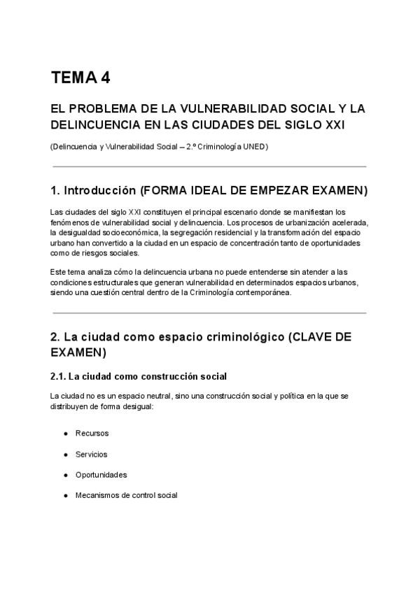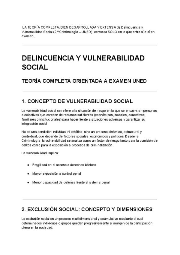 LA TEORÍA COMPLETA, BIEN DESARROLLADA Y EXTENSA de Delincuencia y Vulnerabilidad Social (2.º Criminología – UNED), centrada SOLO en lo que entra sí o sí en examen.