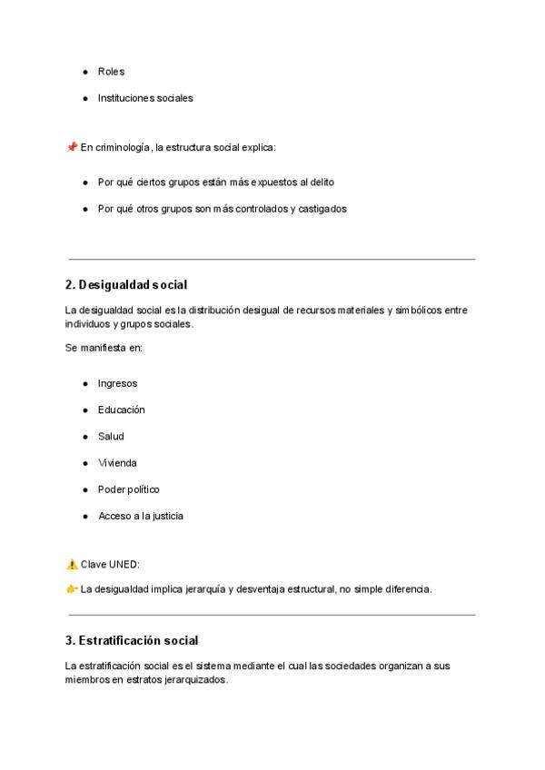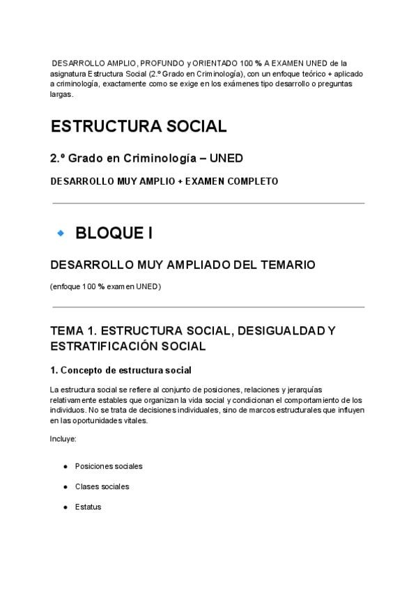DESARROLLO AMPLIO, PROFUNDO y ORIENTADO 100 % A EXAMEN UNED de la asignatura Estructura Social (2.º Grado en Criminología), con un enfoque teórico + aplicado a criminología, exactamente como se exige en los exámenes tipo desarrollo o preguntas largas.