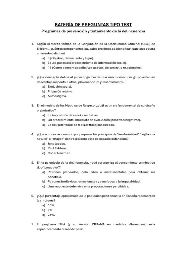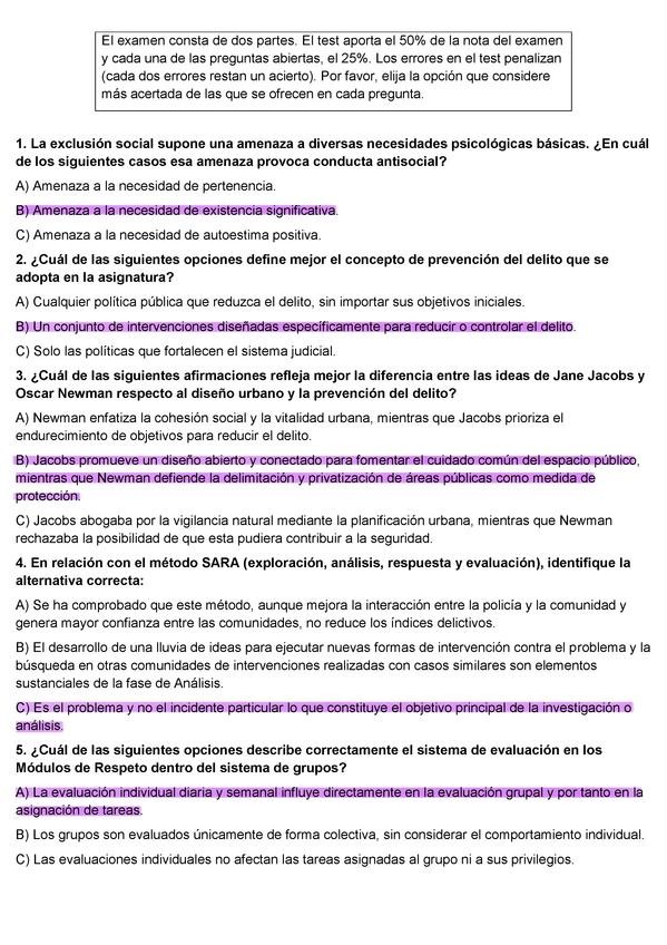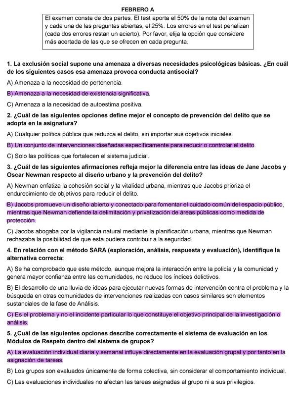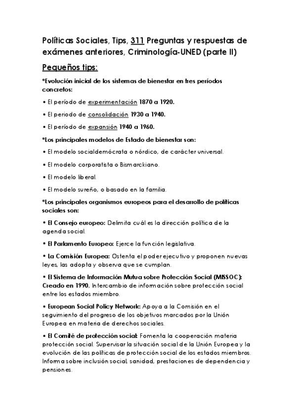 Políticas Sociales, Tips, 311 Preguntas y respuestas de exámenes anteriores, Criminología-UNED (parte II) Exámenes anteriores, políticas sociales, tercer curso, UNED, grado en criminología.