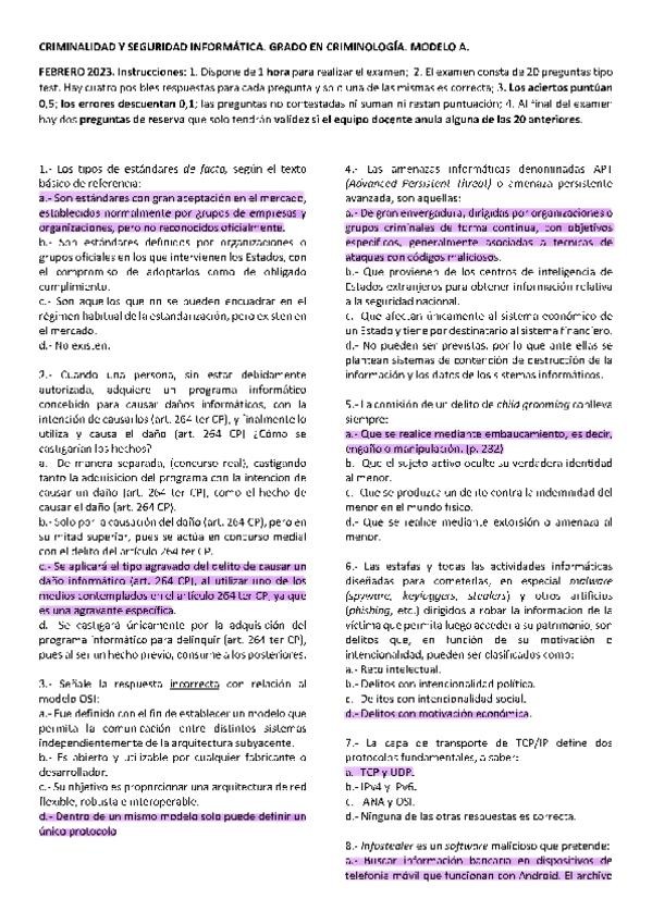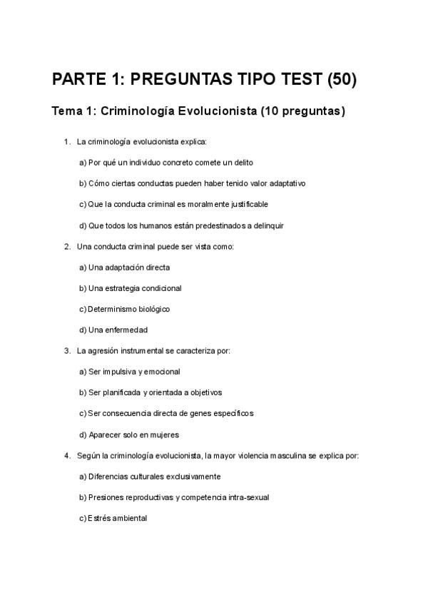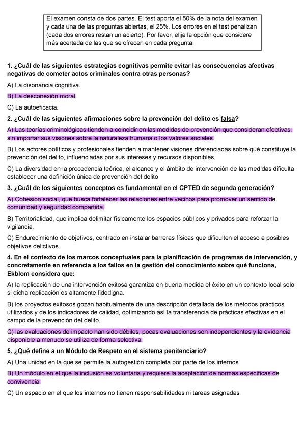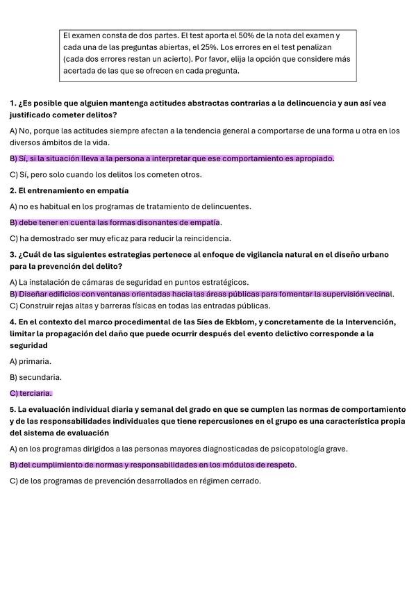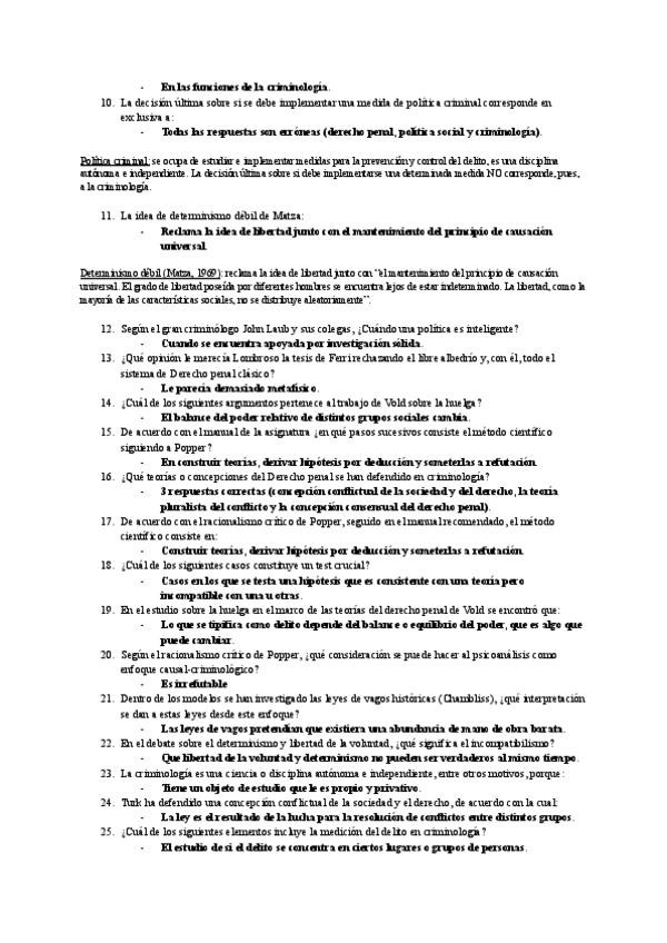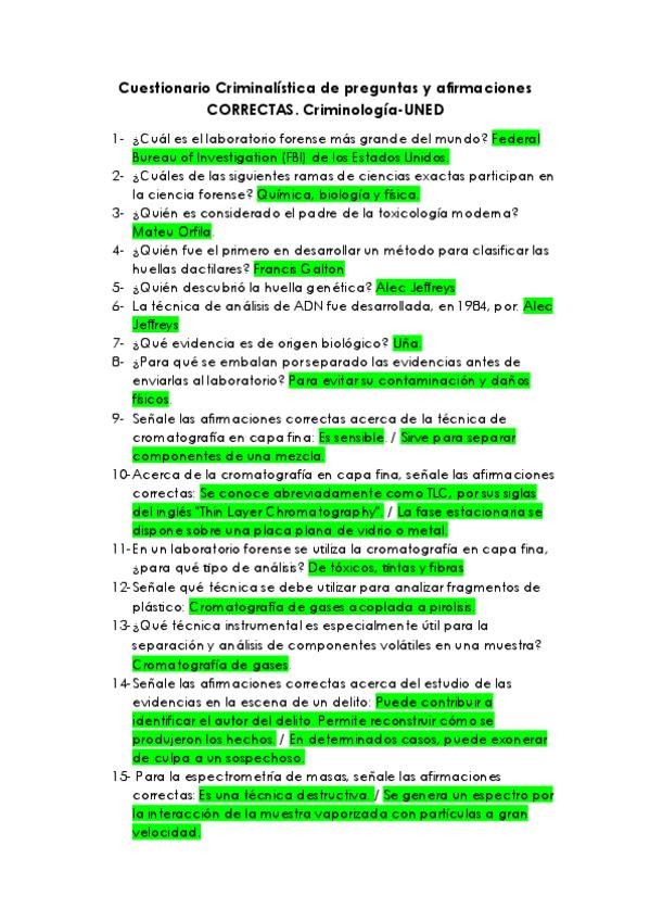 Exámenes anteriores. Cuestionario Criminalística de preguntas y afirmaciones CORRECTAS. Criminología-UNED