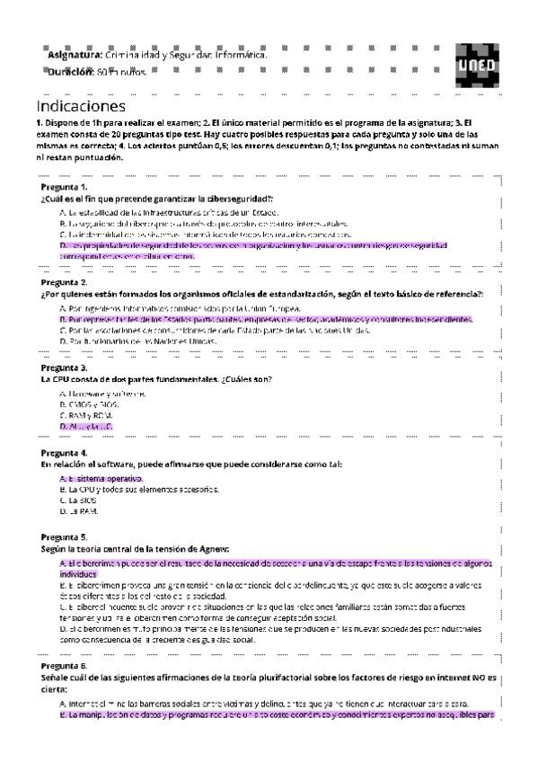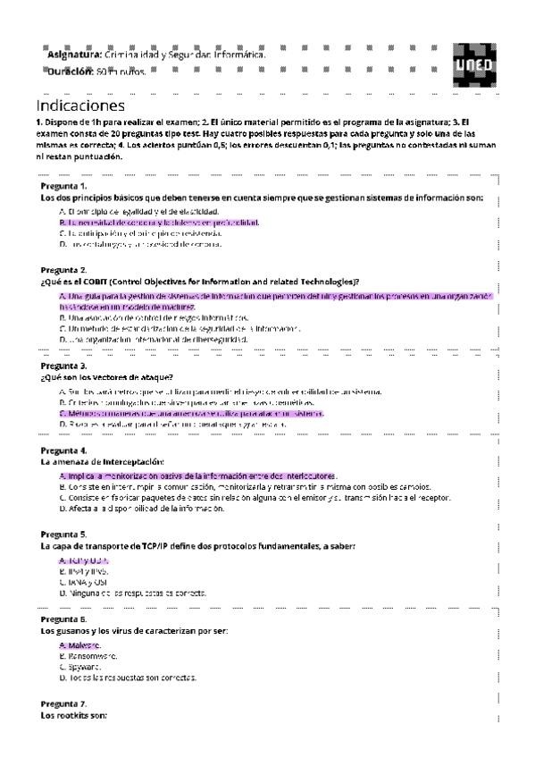 Examen más respuestas con preguntas estudiadas y basadas en exámenes anteriores que caen, sí o sí, en el examen