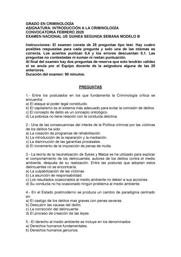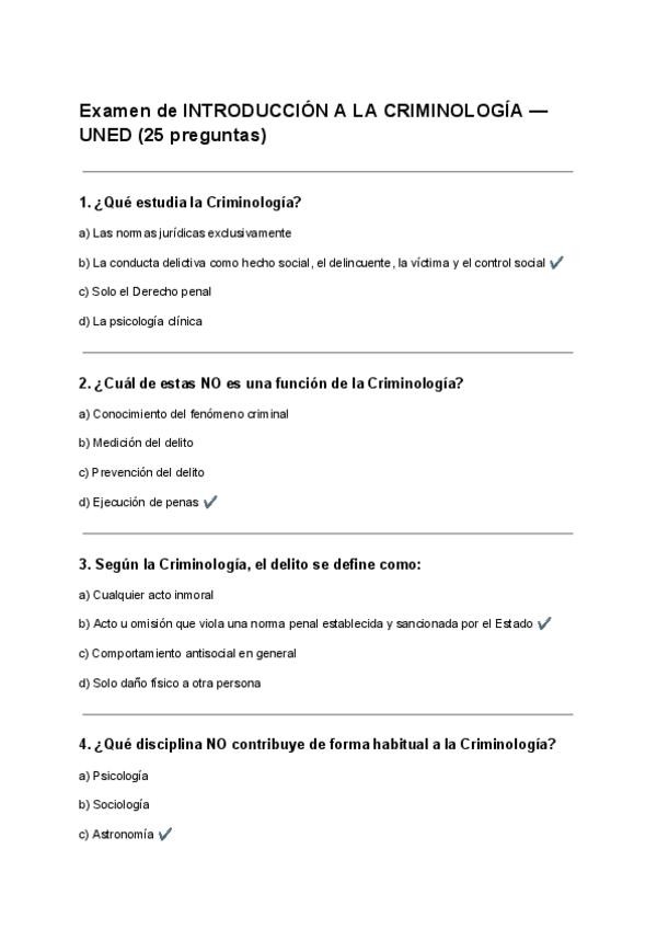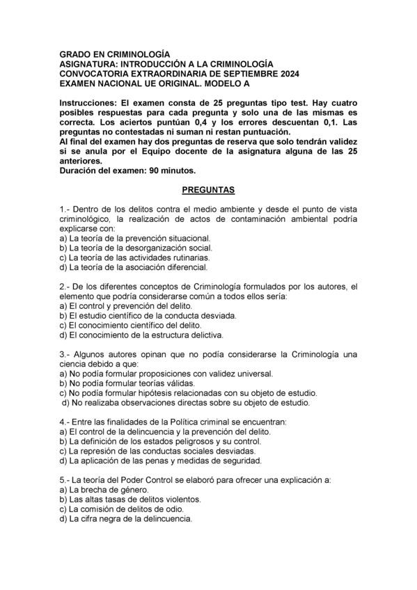 Buenas días compis...!!! 😊 Tenéis nuevos exámenes de todas las asignatur as de la carrera. Estudiados y basados en exáme nes anteriores q caen seguro. Y si necesitáis teoría también tenéis resúmenes centrados en lo q cae si o si en el examen, y reali zados según el tipo de examen (test, desarrollo o mixto). Ánimo futuros criminólogos 💪💪💪