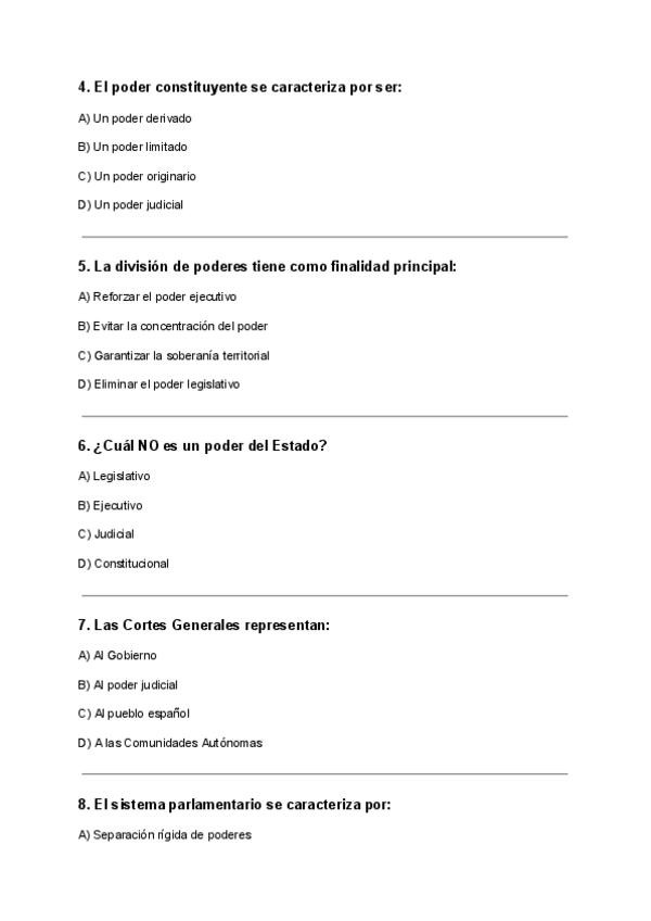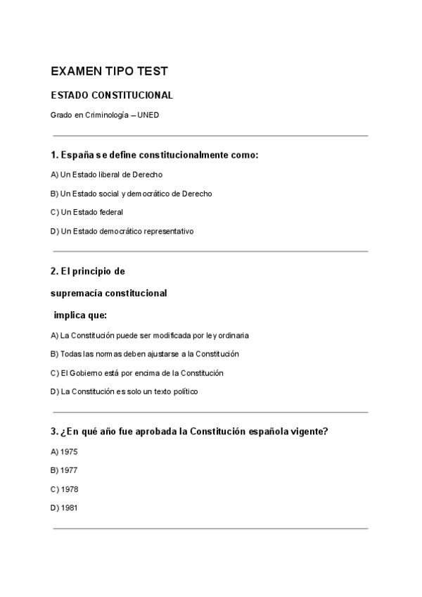 Examen de respuestas con preguntas estudiadas y basadas en exámenes anteriores que caen si o sí, en el examen