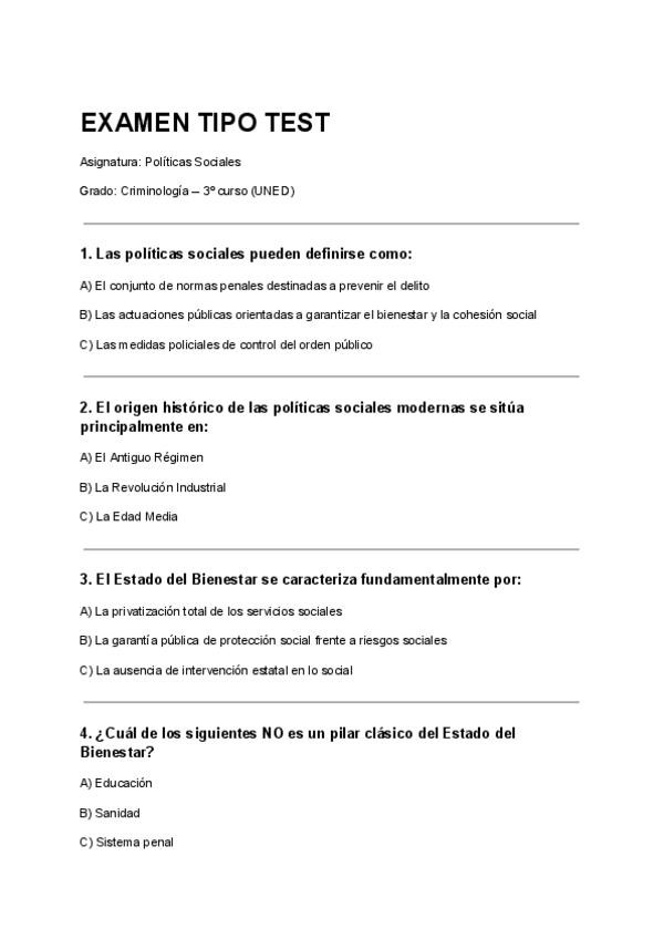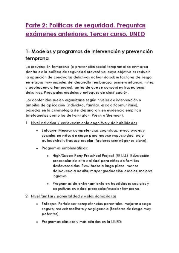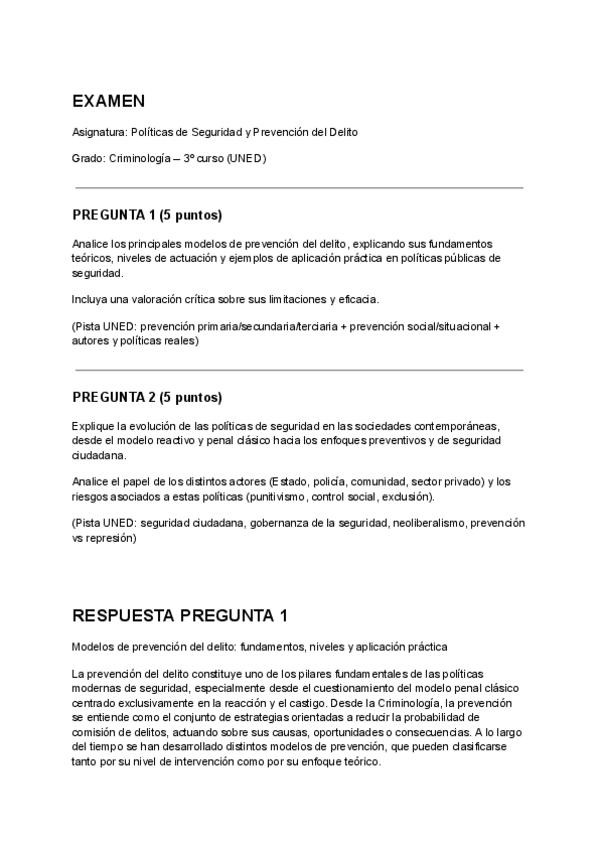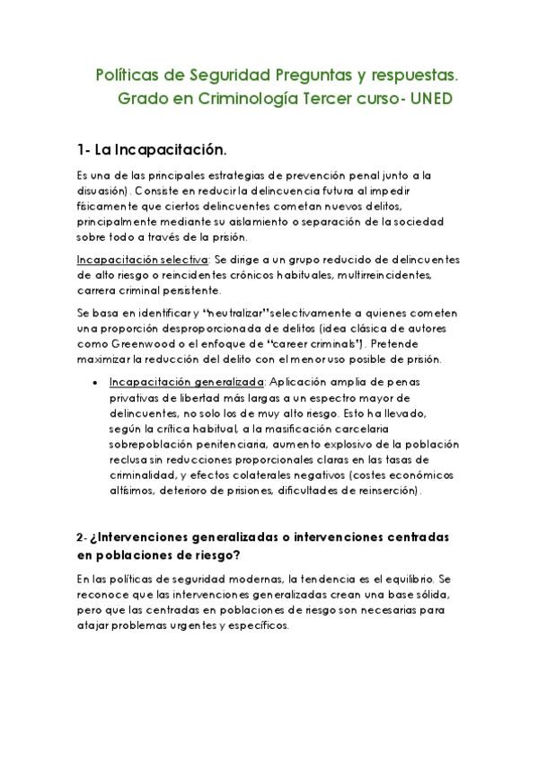 Preguntas con respuestas, exámenes anteriores, Políticas de Seguridad, grado en criminología UNED. Políticas de Seguridad Preguntas y respuestas. Grado en Criminología Tercer curso- UNED