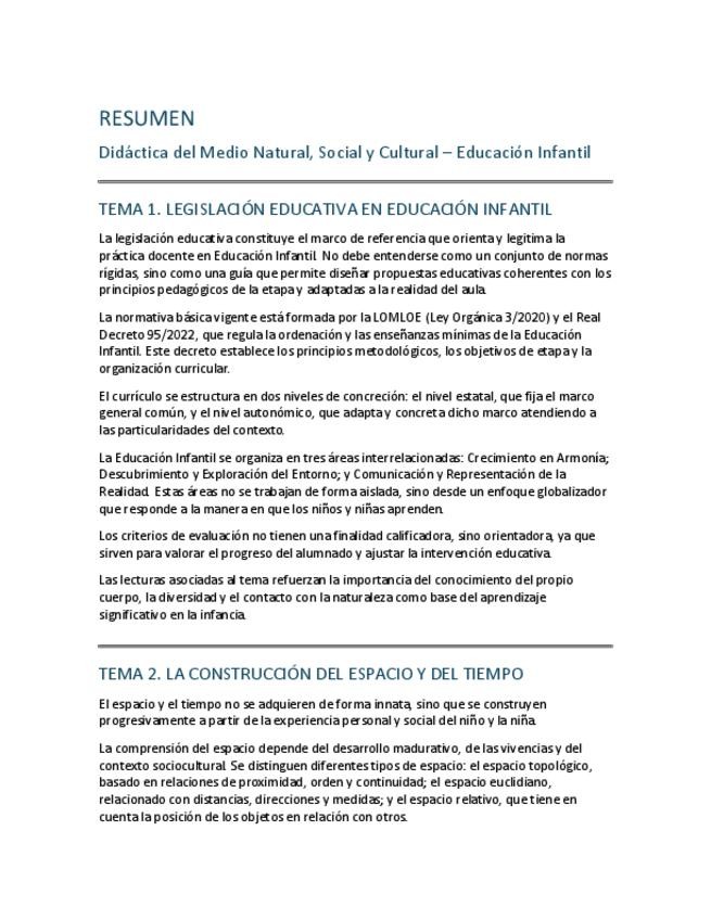 Resumen TEMA 6 - DIDÁCTICA DEL MEDIO NATURAL, SOCIAL Y CULTURAL EN E.I. (UNED) - LECTURAS OBLIGATORIAS (1 Y 2) + AUTOEVALUACIÓN