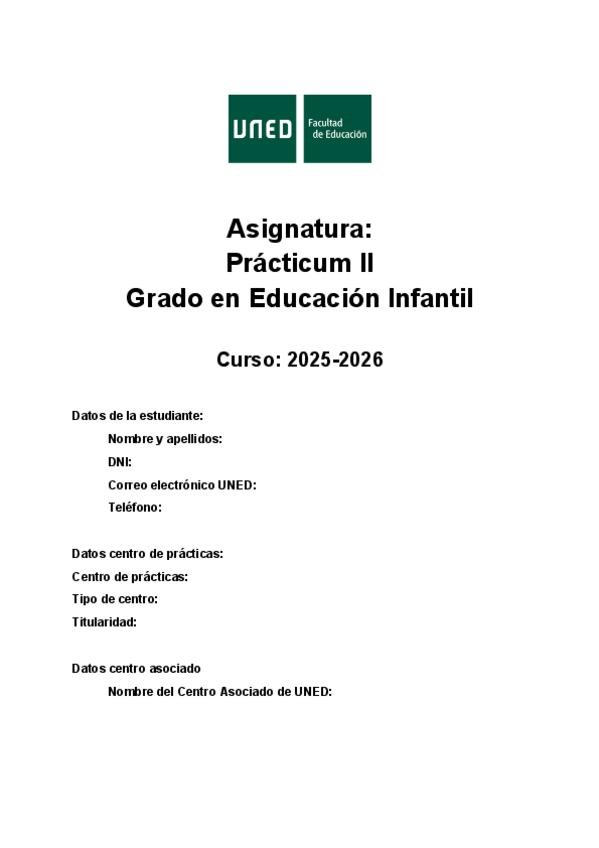 Asignaturas de Grado en Educación Infantil (UNED)