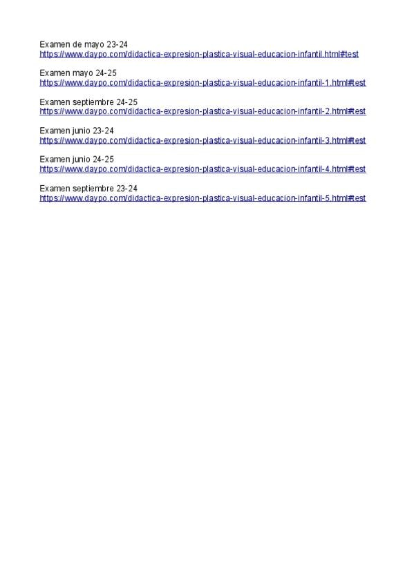 He publicado nuevos examenes de 3º Didáctica de la Expresión Plástica y Visual en Educación Infantil: Didactica-de-la-expresion-plastica-y-visual-en-Educacion-Infantil.pdf