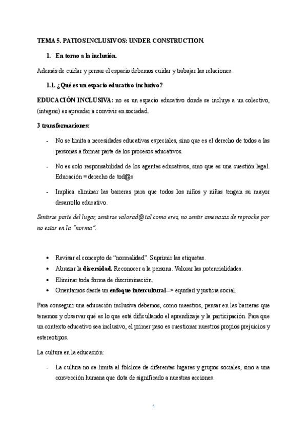 He publicado nuevos apuntes de 4º Patios Escolares. Juego e Inclusión en la Escuela: TEMA-1.pdf