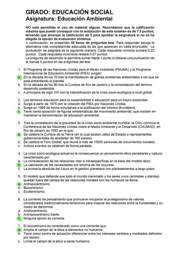 EXAMENES RESUELTOS AÑO 2022-2023 EDUCACIÓN AMBIENTAL