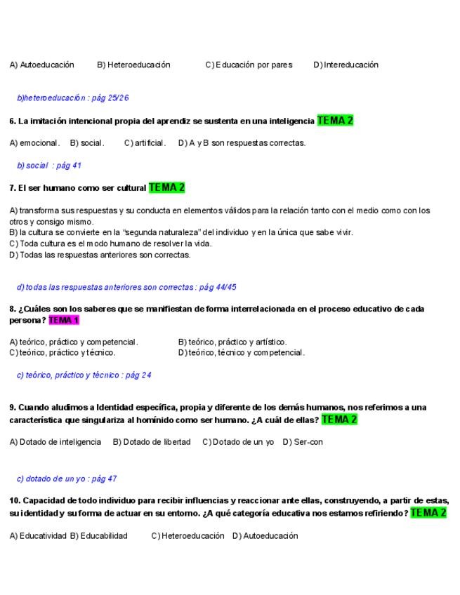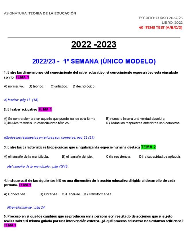 Exámenes de teoría de la educación, con dos plantillas oficiales al final.