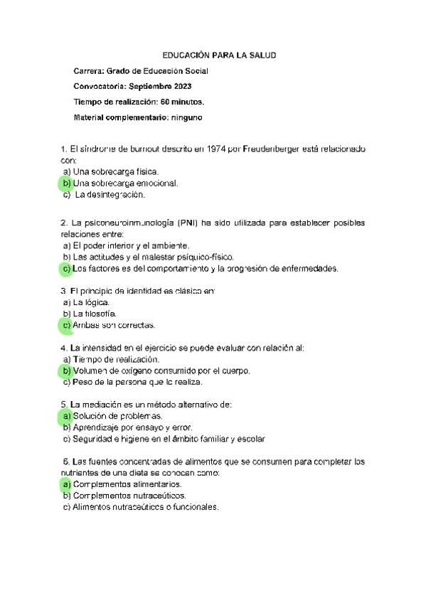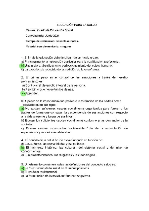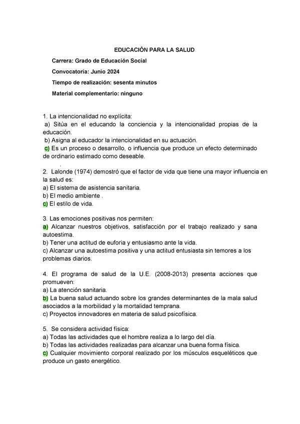 EXAMENES RESUELTOS AÑO 2023-2024 EDUCACIÓN PARA LA SALUD