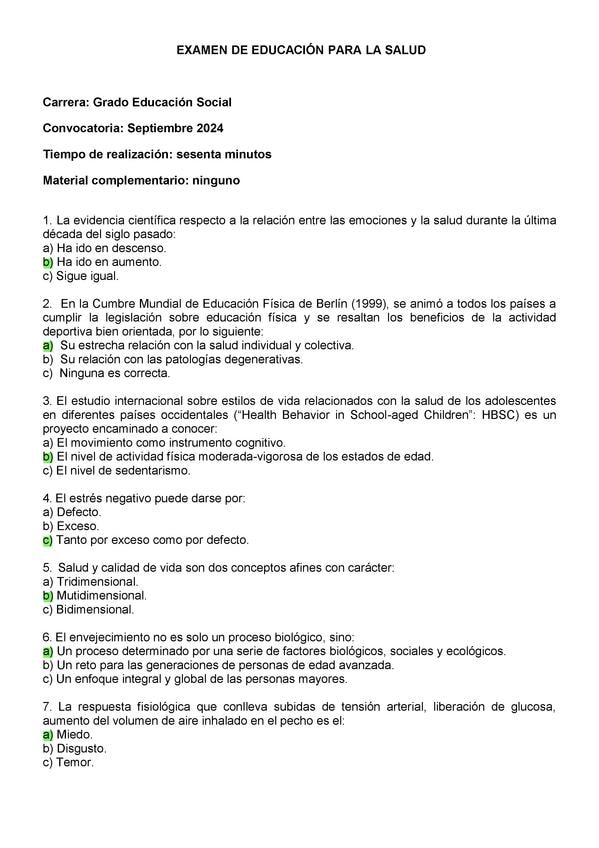 EXAMENES RESUELTOS AÑO 2024-2025 EDUCACIÓN PARA LA SALUD