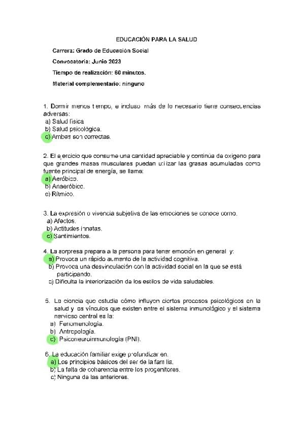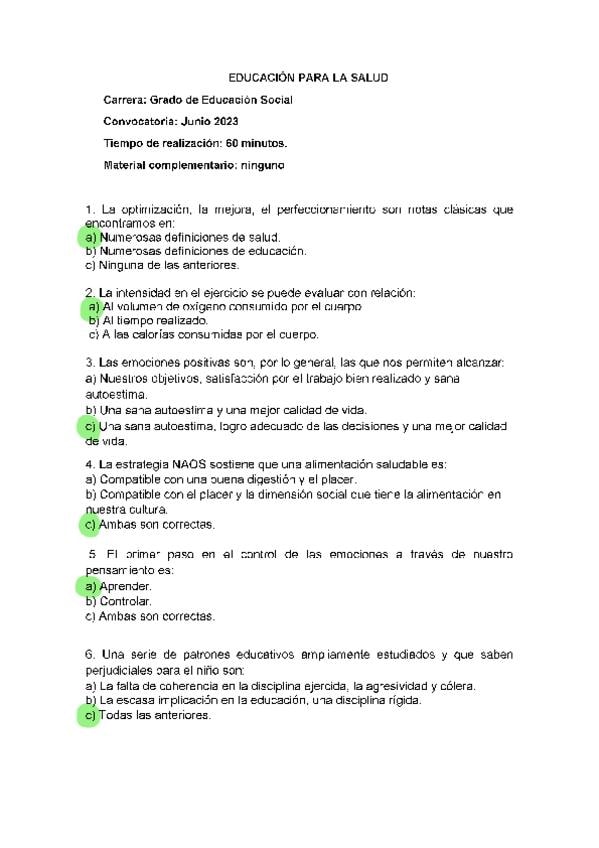 EXAMENES RESUELTOS AÑO 2022-2023 EDUCACIÓN PARA LA SALUD