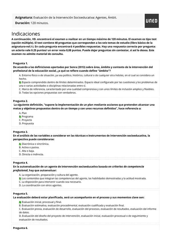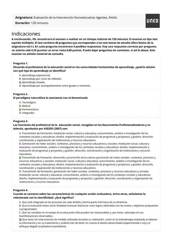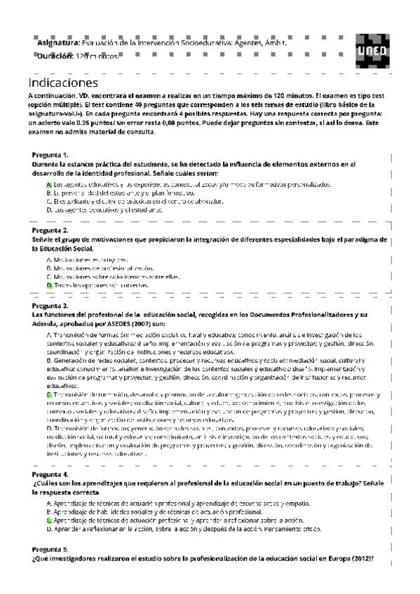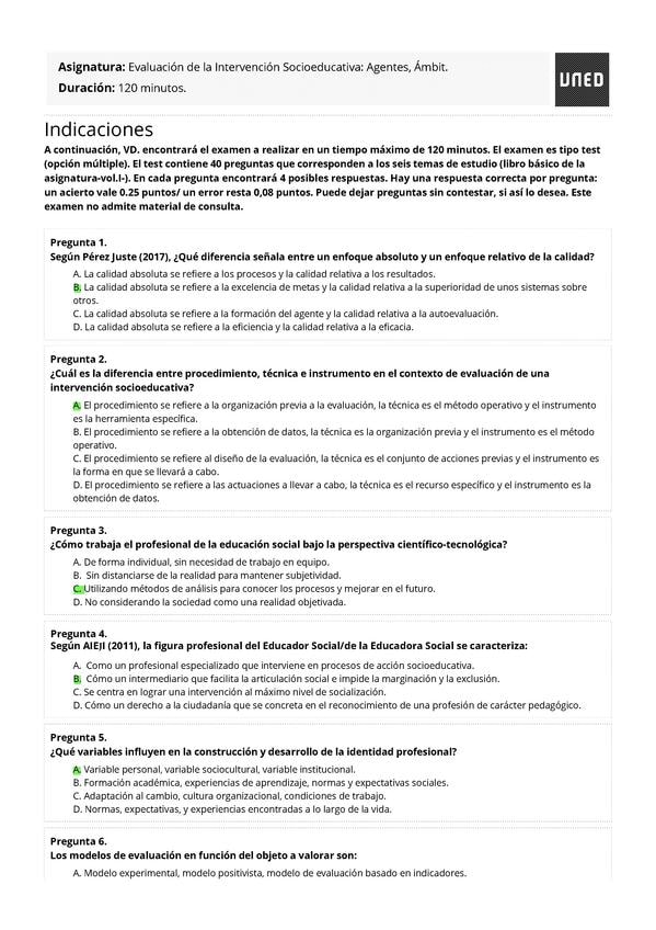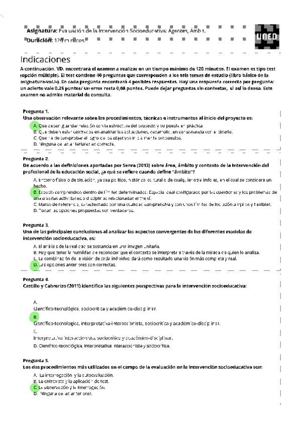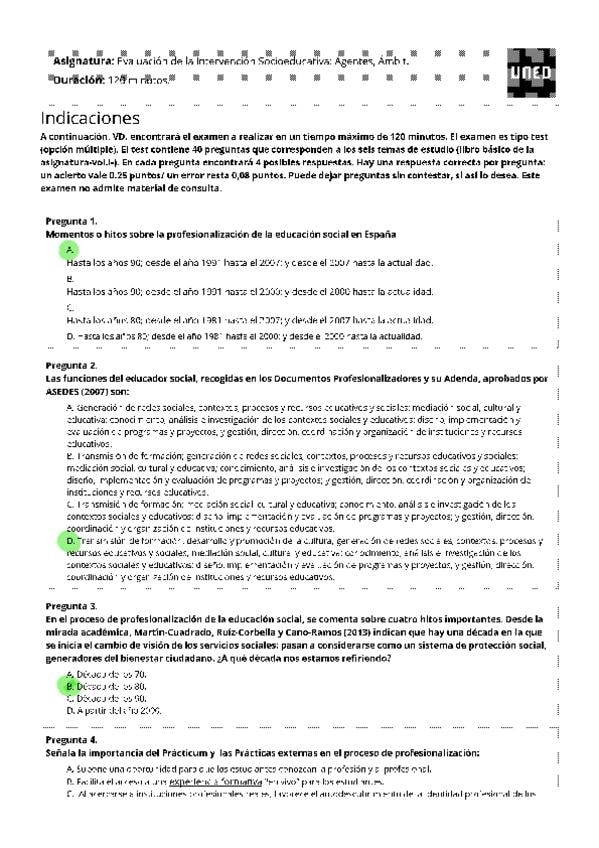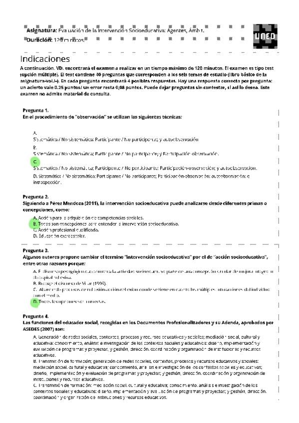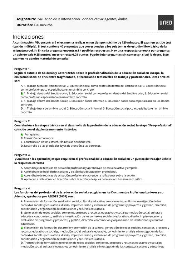 EXAMENES RESUELTOS AÑO 2024-2025 EVALUACIÓN DE LA INTERVENCIÓN SOCIOEDUCATIVA: AGENTES, ÁMBITOS Y PROYECTOS