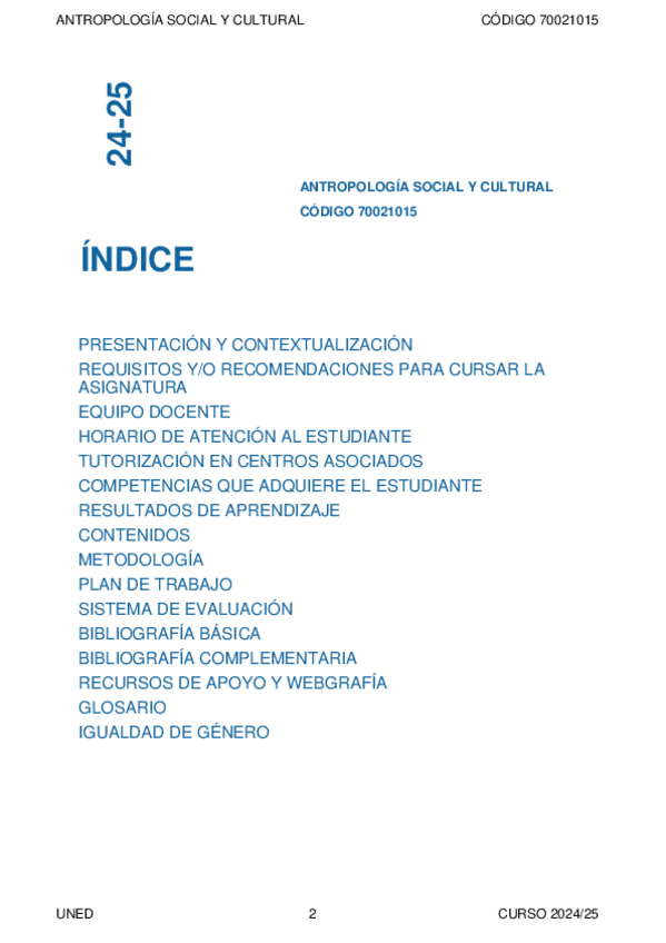 Asignaturas de Grado en Antropología Social y Cultural (UNED)