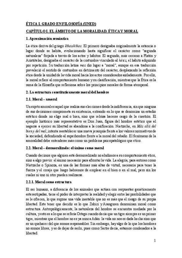 Apuntes de los 8 temas de Ética I. Nota del examen: MH