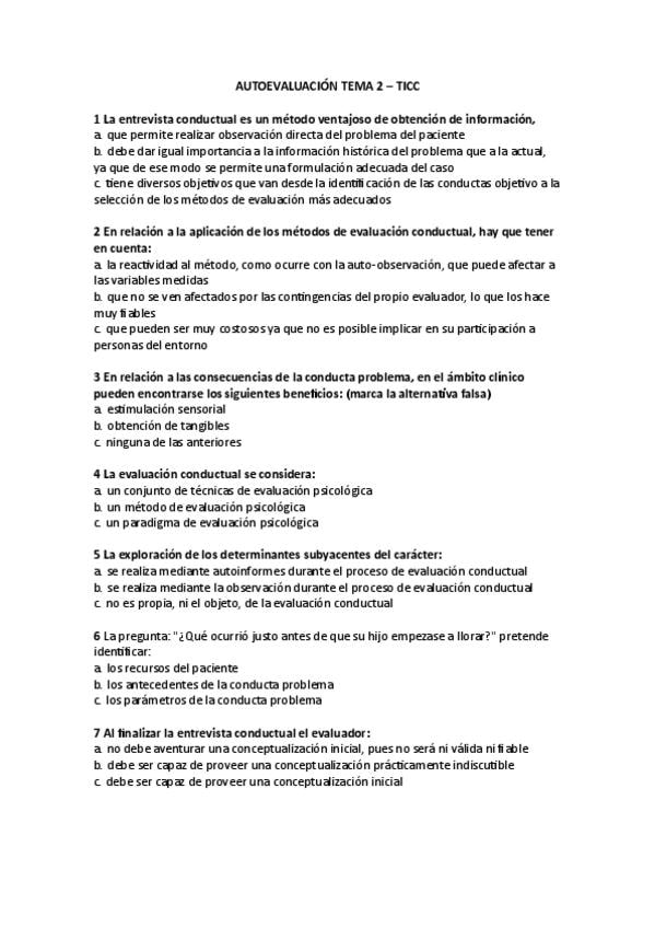 Autoevaluación Tema 2 del campus online con sus correspondientes respuestas correctas.