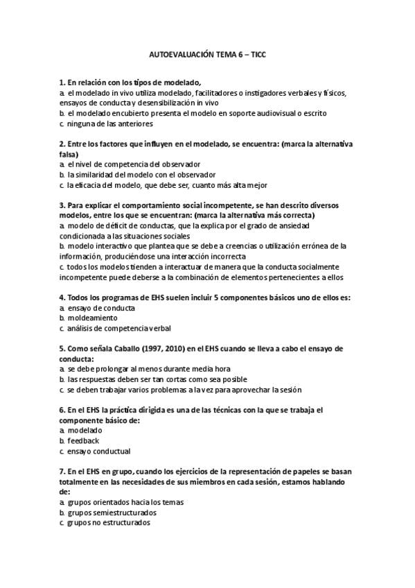 Autoevaluación Tema 6 del campus online con sus correspondientes respuestas correctas.