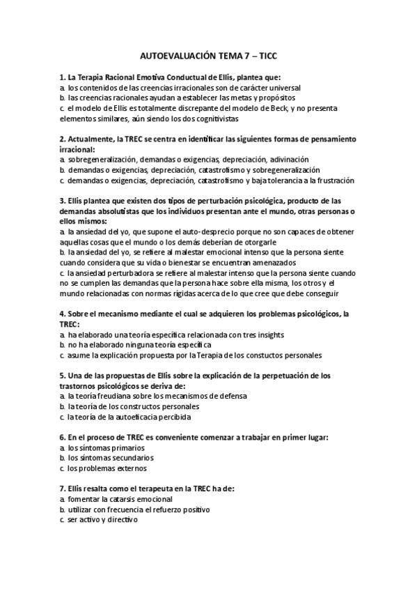 Autoevaluación Tema 7 del campus online con sus correspondientes respuestas correctas.