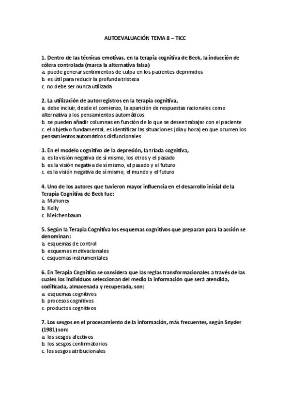 Autoevaluación Tema 8 del campus online con sus correspondientes respuestas correctas.