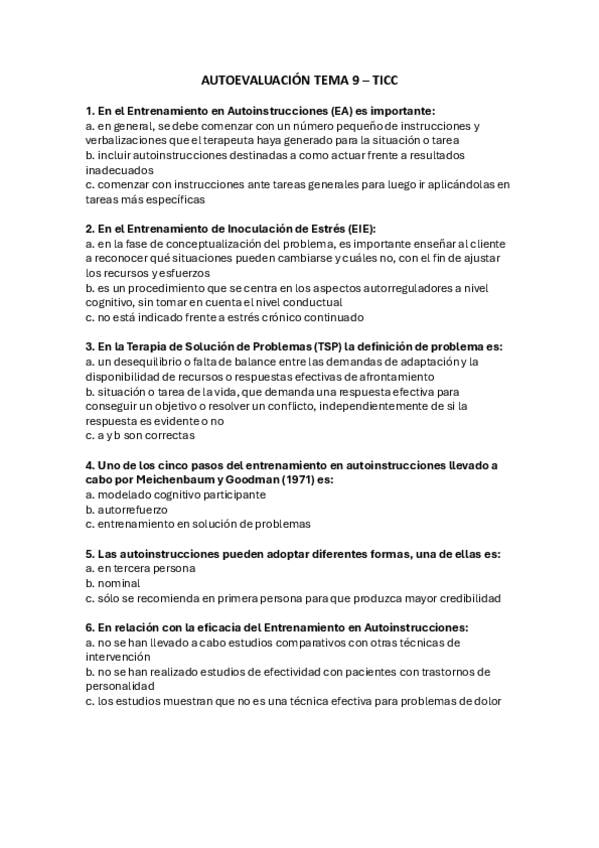 Autoevaluación Tema 9 del campus online con sus correspondientes respuestas correctas.
