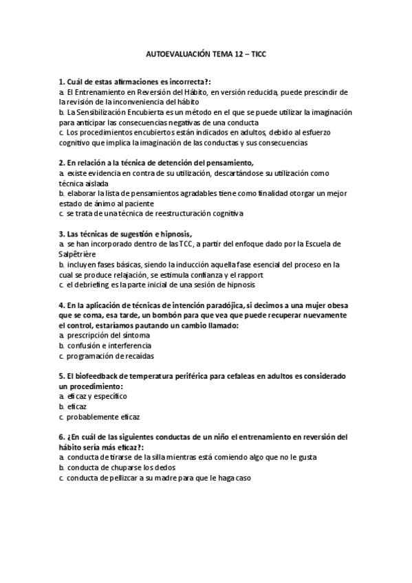 Autoevaluación Tema 12 del campus online con sus correspondientes respuestas correctas.