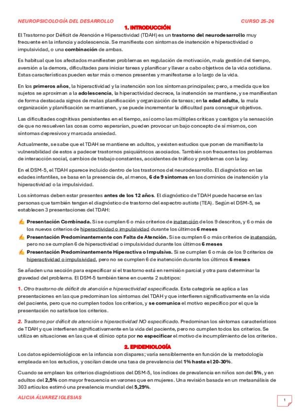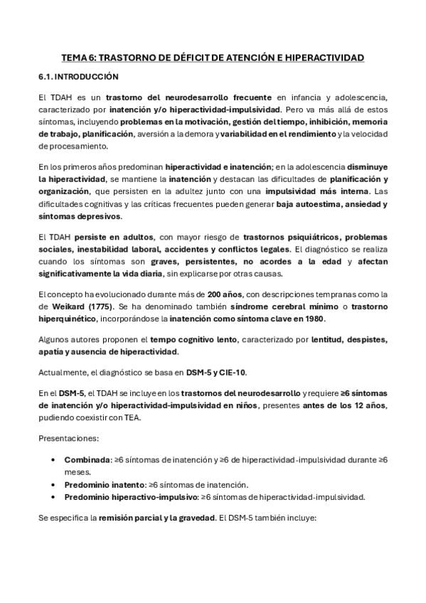 RESUMEN TEMA 6 TRASTORNO DE DÉFICIT DE ATENCIÓN E HIPERACTIVIDAD