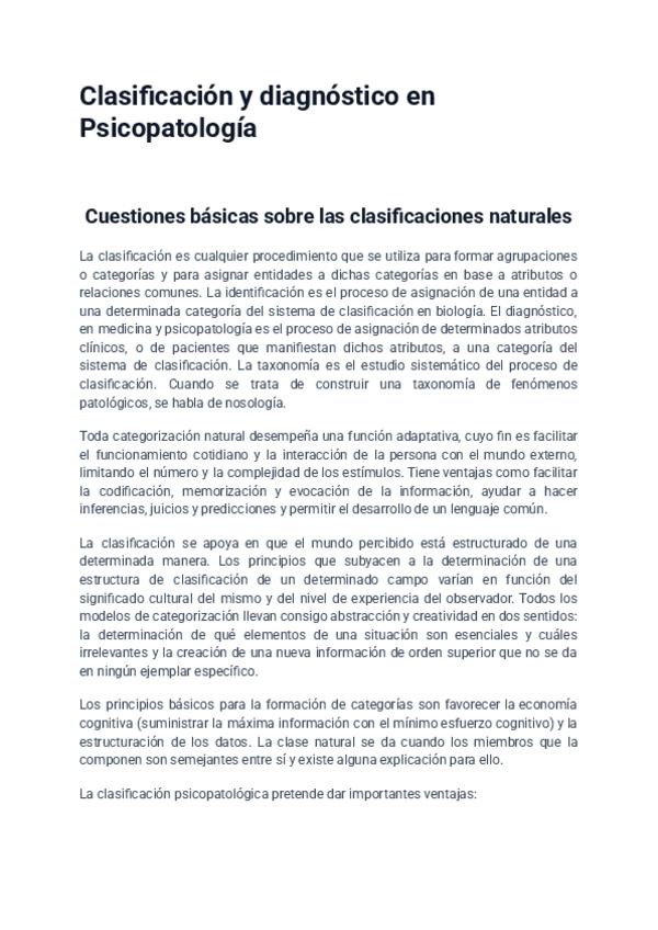 Clasificación y diagnóstico en Psicopatología