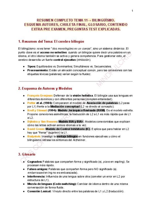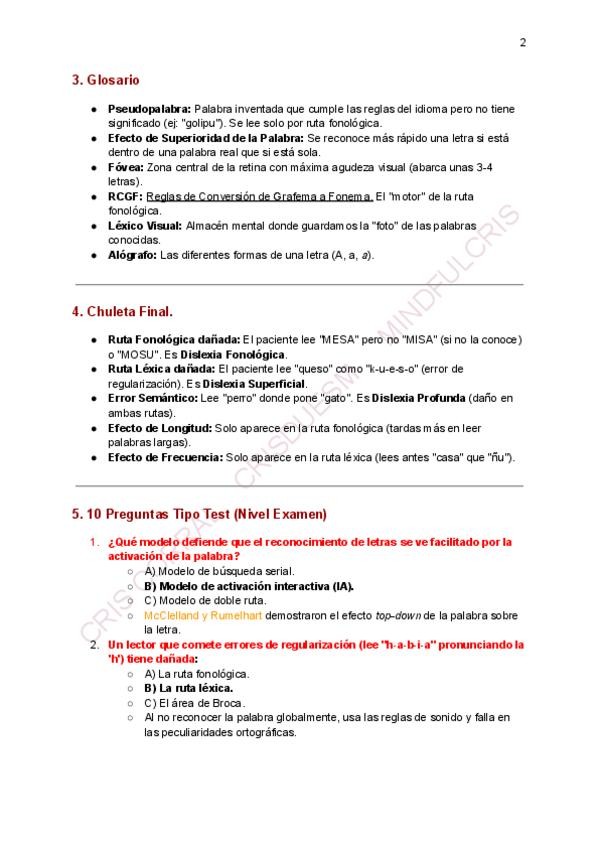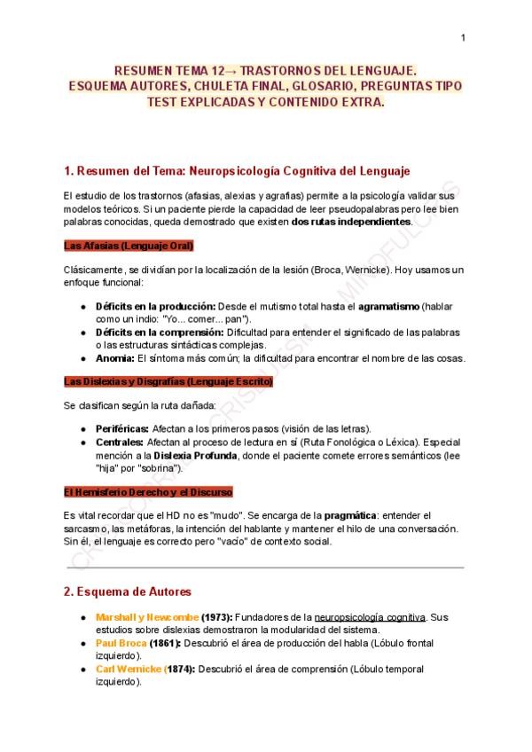 Resumen, esquema autores, chuleta final, glosario, 10 preguntas tipo test explicadas. Contenido extra nemotecnia ruta dorsal y ventral.