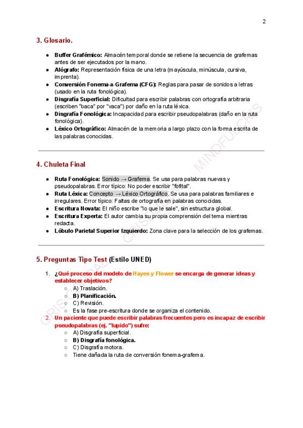 Esquema, apartado autores, chuleta final, glosario, 10 preguntas test explicadas y contenido extra pre examen: diferencia entre escritura y lectura / centro de Exner.