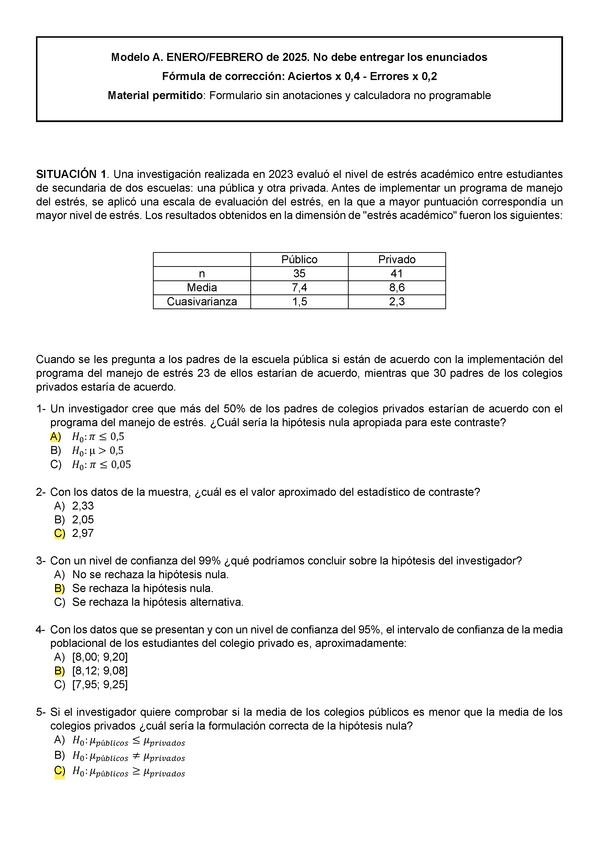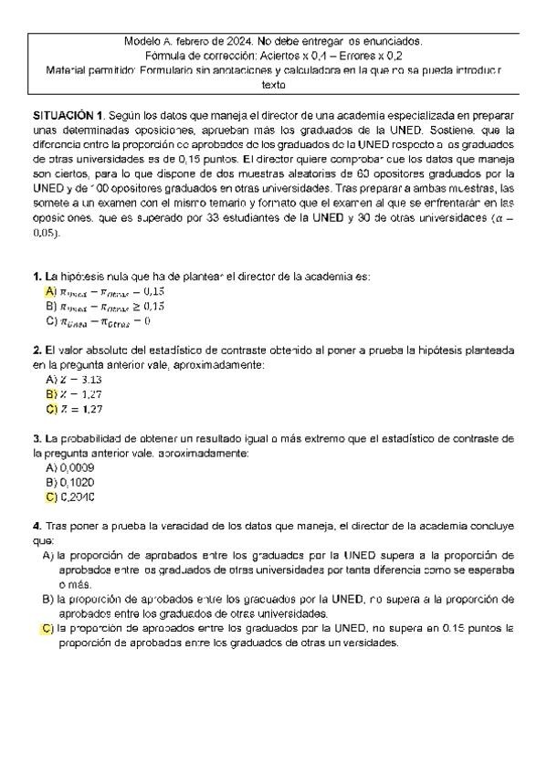 Correcciones del examen de ayer, primera semana Enero 2026. Correcciones del grupo de Telegram, al haber muchas preguntas que han salido otros años, no hay duda sobre las respuestas.