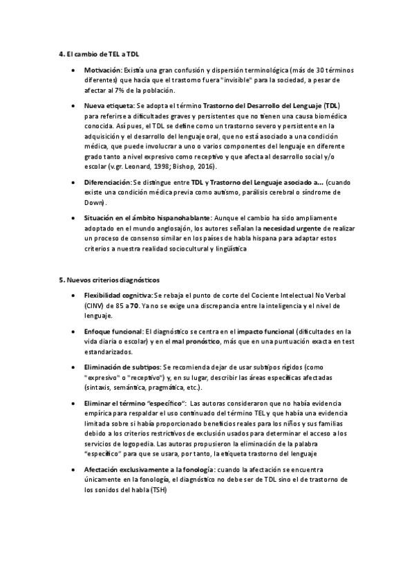 Resumen Articulo T8 Alteraciones Desarrollo. Descripción del cambio del TEL al TDL