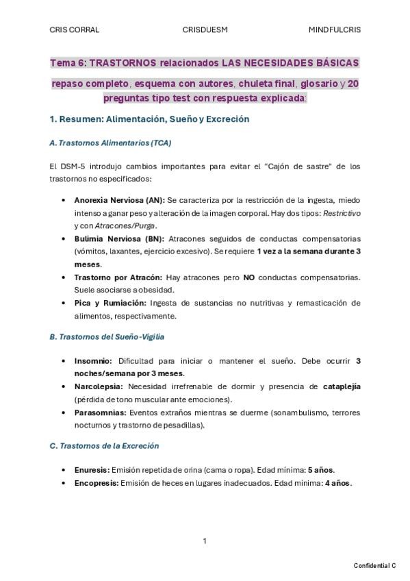 TRASTORNOS NECESIDADES BÁSICAS- resumen, autores, chuleta final, glosario y preguntas test