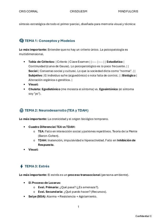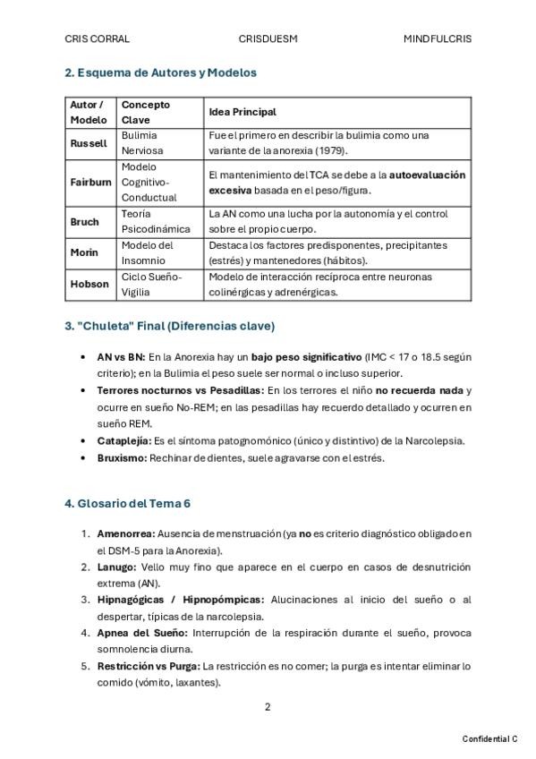 - Resumen de los temas 2-7. - Material de REPASO que necesita previa lectura del tema. - La mayoría de redacciones son literales del libro. - La parte neuropsicológica recomiendo repasarla con otros esquemas.