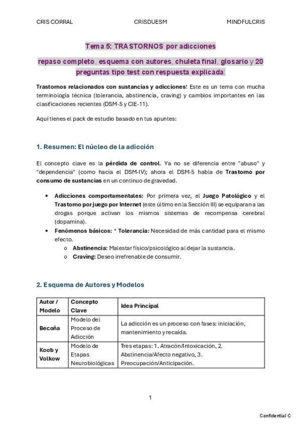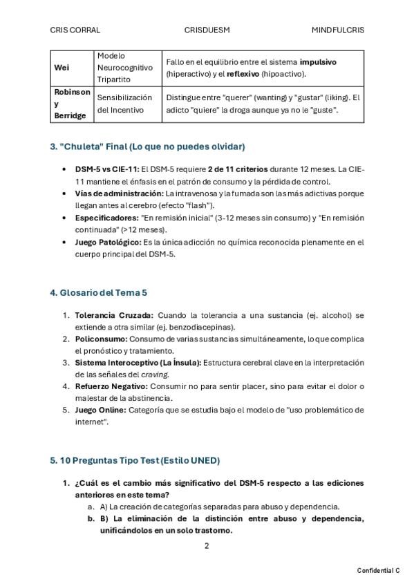 TRASTORNOS por adicciones- esquema, chuleta final, glosario y preguntas test explicadas
