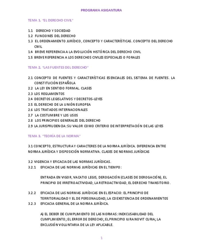 Temas del 1 al 3 de la asignatura de Introducción al Derecho Civil, correspondientes al primer parcial de la asignatura.