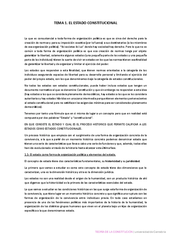Apuntes de los temas 1 y 2 de Teoría de la Constitución impartidos por el profesor adscrito Luis. Temario completo.