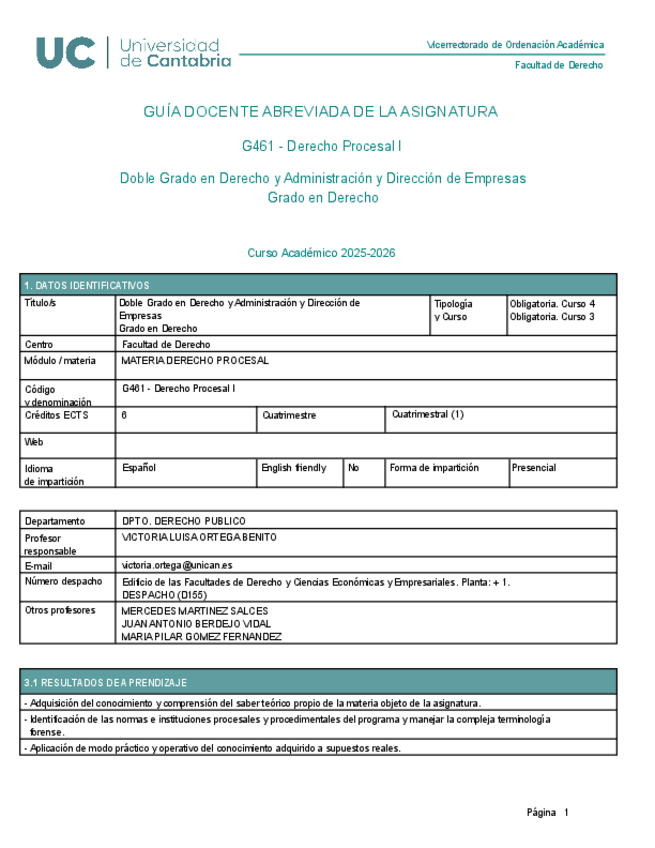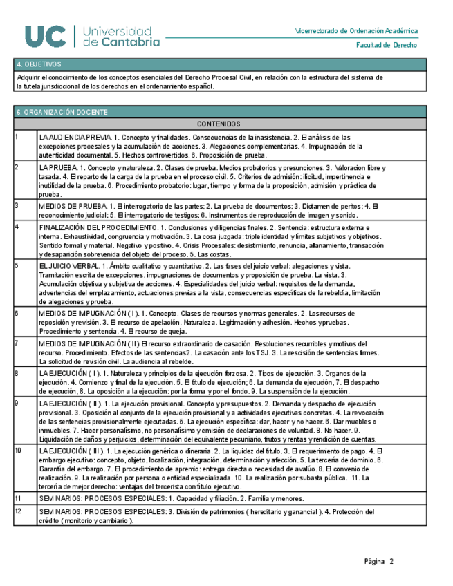 Asignaturas de Grado en Derecho (UNICAN)