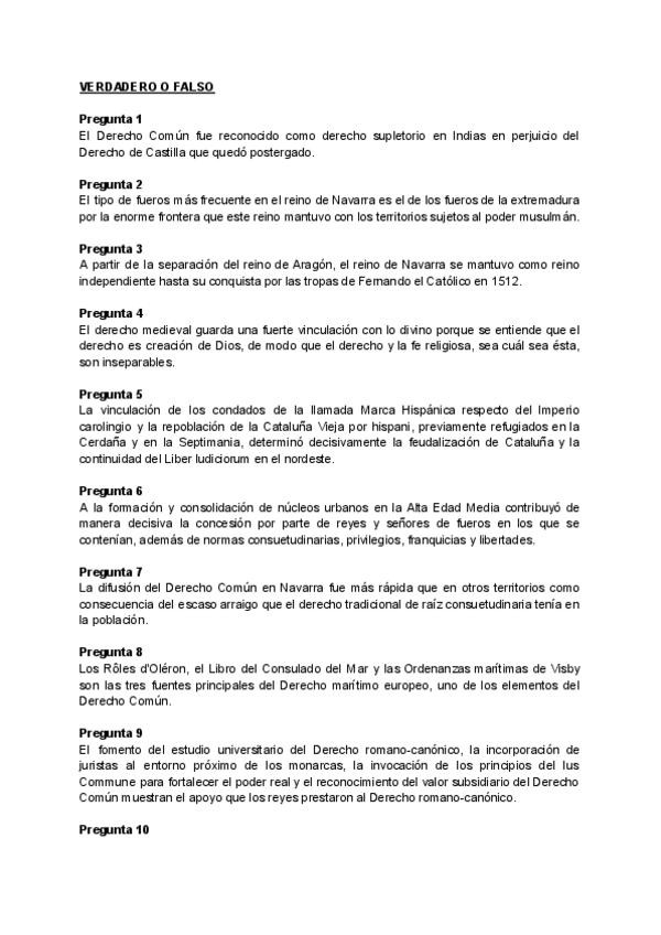 Preguntas de verdadero o falso del segundo cuestionario.