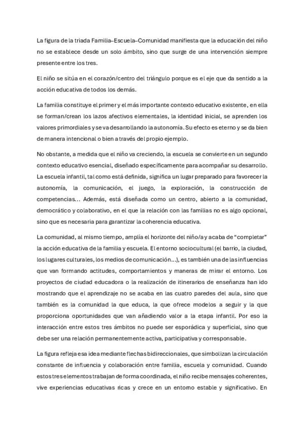 Reflexión triada familia niño escuela basada en los temas 3 y 4 dados en clase