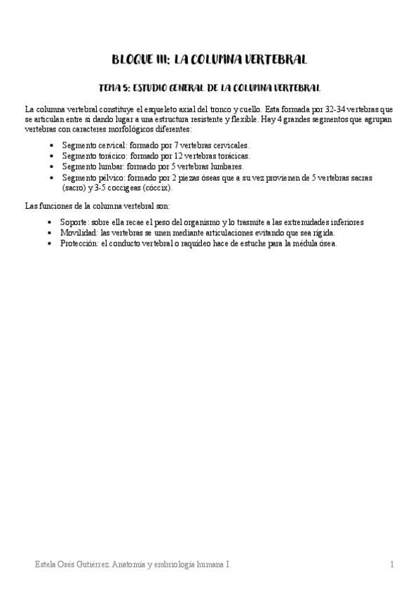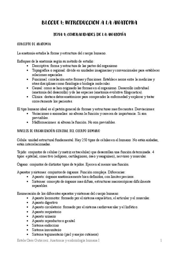 Resumen del bloque I de anato segun el porrero y los guiones
