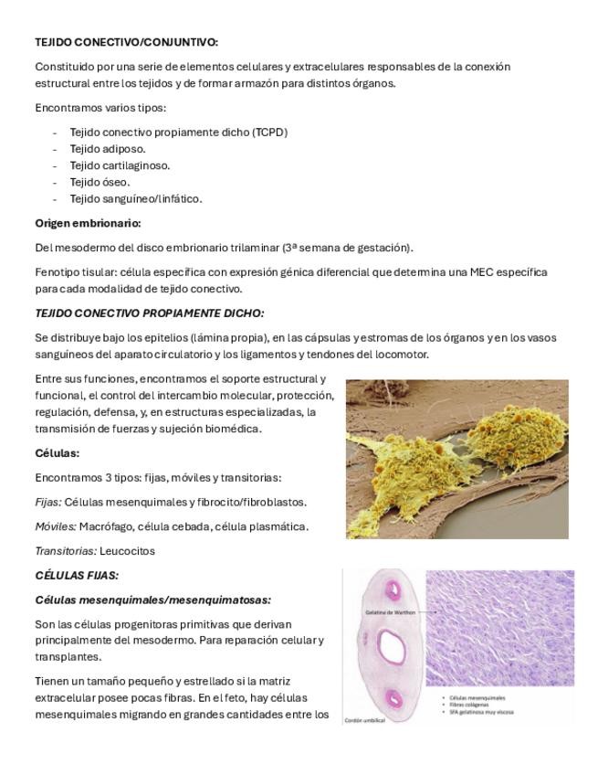 Tejido conectivo/conjuntivo (propiamente dicho, adiposo, cartilaginoso y óseo), tejido muscular y tejido neuronal. La parte de tejido muscular no está en las mejores condiciones. Si encuentran errores avisen y mucha suerte.