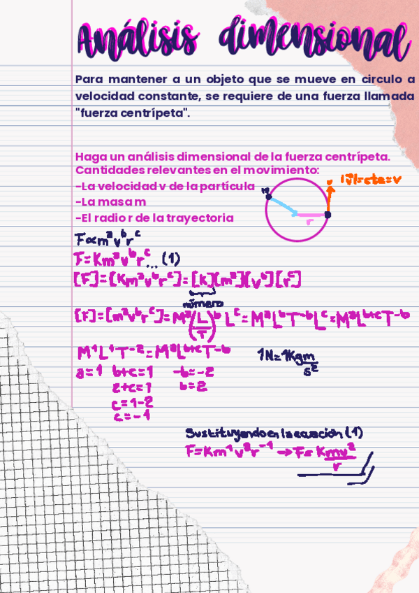 Haga un análisis dimensional de la fuerza centrípeta.