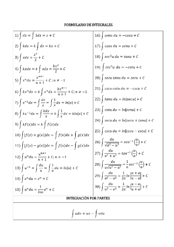 He publicado nuevos ejercicios de 1º Cálculo Integral: Formulas-de-Integracion.pdf