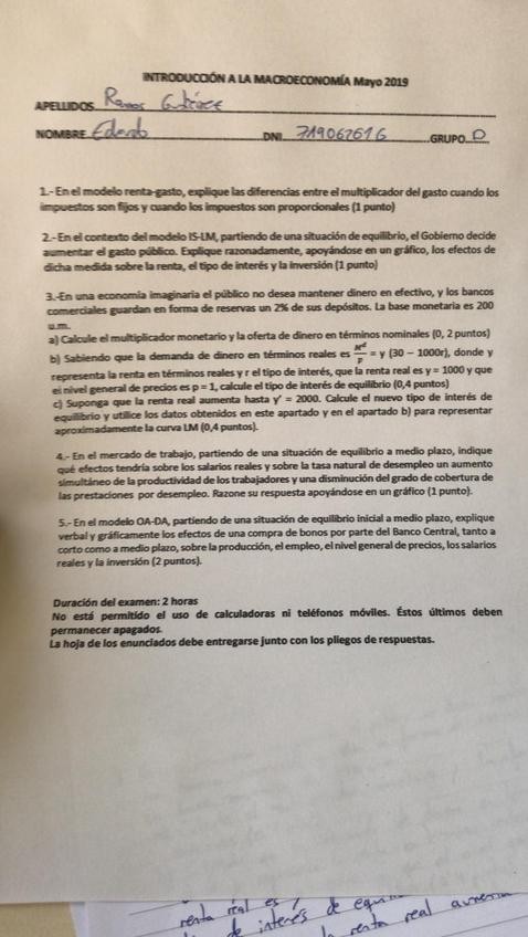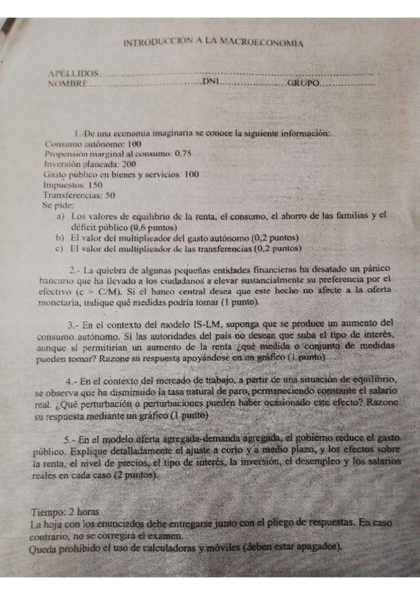 He publicado nuevos apuntes de 1º Introducción a la Macroeconomía: Ejemplo-Examen.pdf