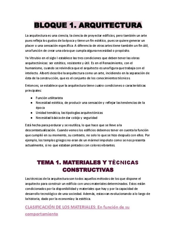Apuntes detallados del bloque temático dedicado a la Arquitectura dentro de la asignatura de primer curso.