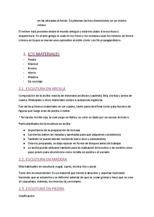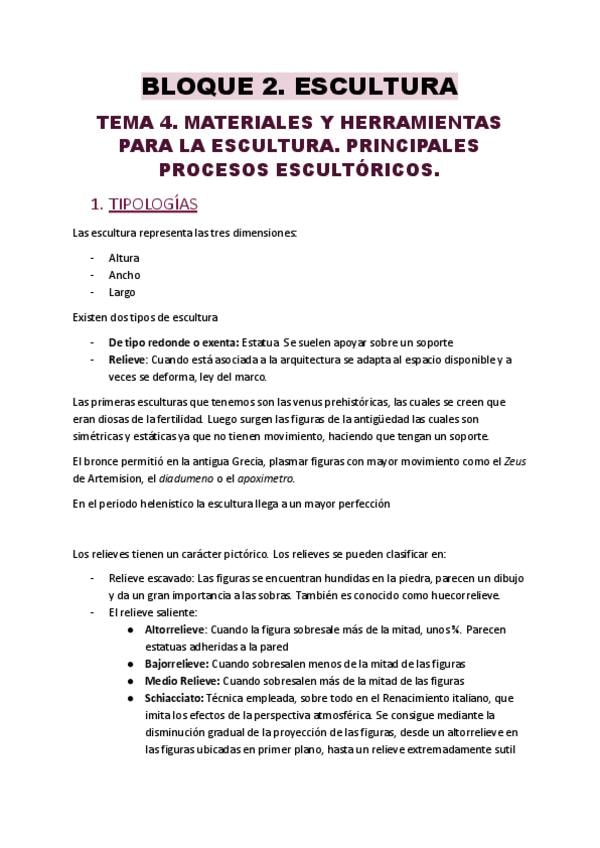 Apuntes detallados del bloque temático dedicado a la Escultura dentro de la asignatura de primer curso.