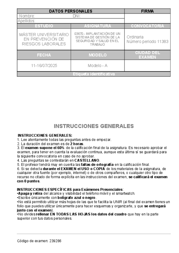 Máster en Prevención de Riesgos Laborales (UNIR)