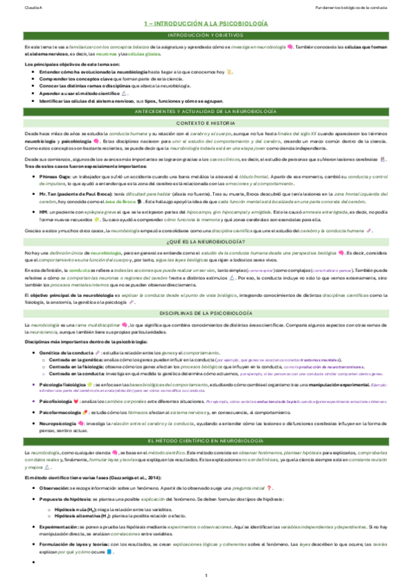 TEMARIO FUNDAMENTOS BIOLÓGICOS DE LA CONDUCTA