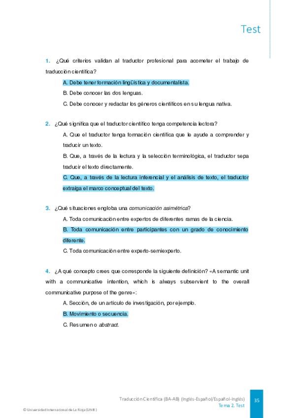He publicado nuevos test de 3º Traducción Científica (Ba-ab) (Inglés-español/español-inglés): TESTS